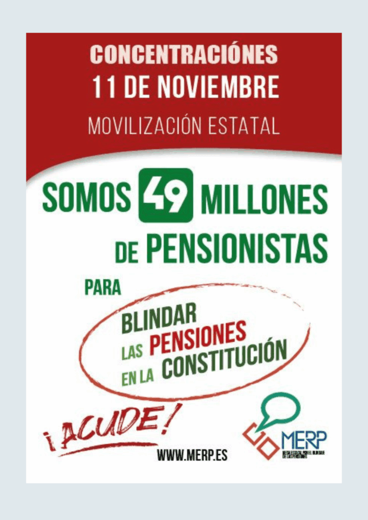 El 11 de noviembre de 2025, la Mesa Estatal por el Blindaje de las Pensiones (MERP) convocó concentraciones en toda España para exigir una reforma constitucional que garantice el...