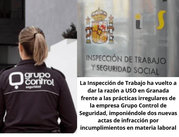 La Inspección de Trabajo ha vuelto a dar la razón a USO en Granada frente a las prácticas irregulares de la empresa Grupo Control de Seguridad, imponiéndole dos nuevas actas de...