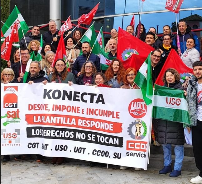 Bajo una jornada de protesta celebrada hoy frente a la sede central de Vodafone en Sevilla, las delegadas y delegados de Konecta BPO y Castillian han vuelto a salir a la calle...