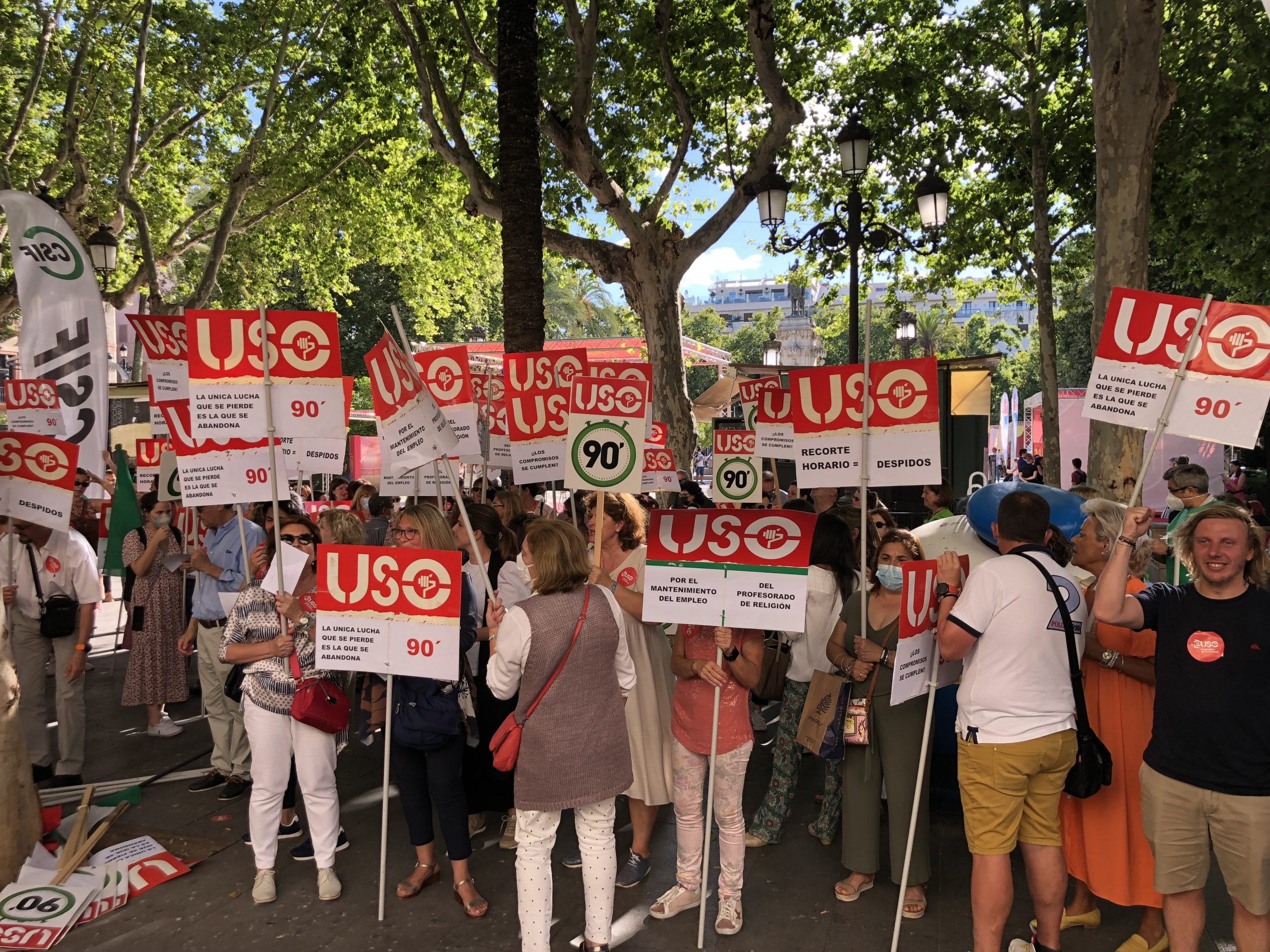 Cientos de profesores de Religión han respondido a la convocatoria de concentraciones de USO, CSIF y ANPE en todas las capitales andaluzas para defender el futuro de sus puestos de trabajo
