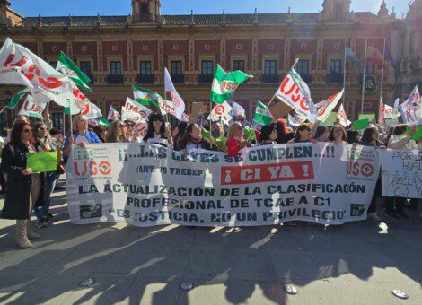 Una multitud de Técnicos en Cuidados Auxiliares de Enfermería (TCAE) ha protagonizado una sonora protesta a las puertas de la Consejería de Sanidad, Presidencia y Emergencias en Sevilla. La concentración, organizada por el sindicato Unión Sindical Obrera (USO), tiene como objetivo principal forzar la reclasificación profesional de estos trabajadores al Grupo C1, terminando así con décadas de lo que consideran un agravio laboral.